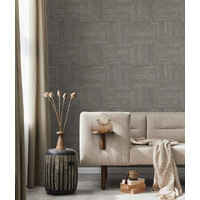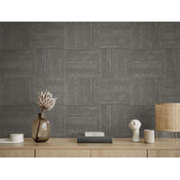 Rough bordered tiling in squares of alternating horizontal and vertical directions shows the softer presentations of geometric patterns. With an all over texture, this simple geo design is given an abundance of depth. The Stonewall colourway features a tiling pattern in a mid grey shade with some lines of metallic silver throughout.