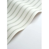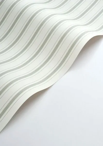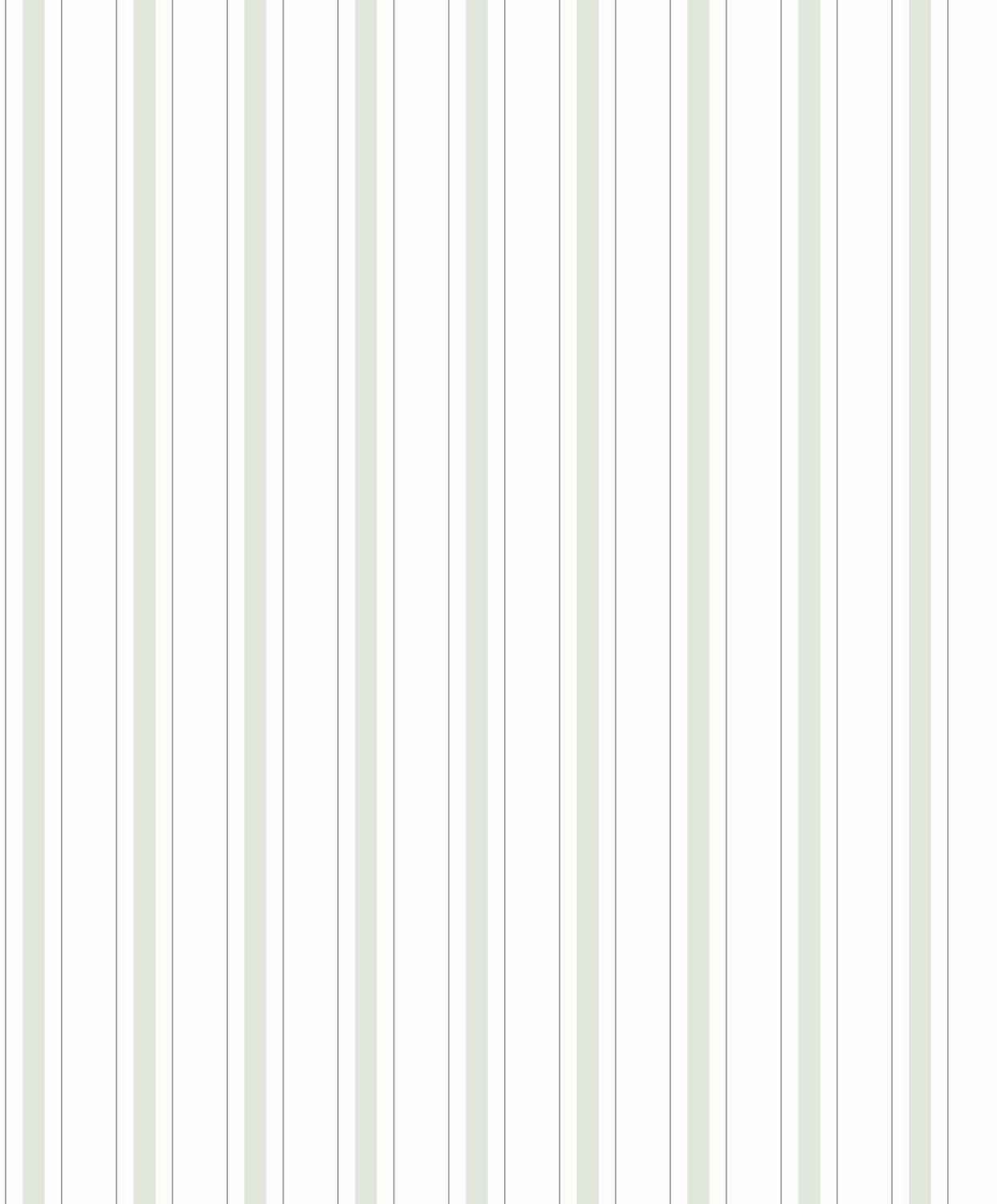 Complementary stripes Three stripes, two thin and one wide, in a soft camel colour: this geometric wallpaper is the perfect accompaniment to Jouy fabrics. The Almond Green colourway features a soft white base with muted green stripes.