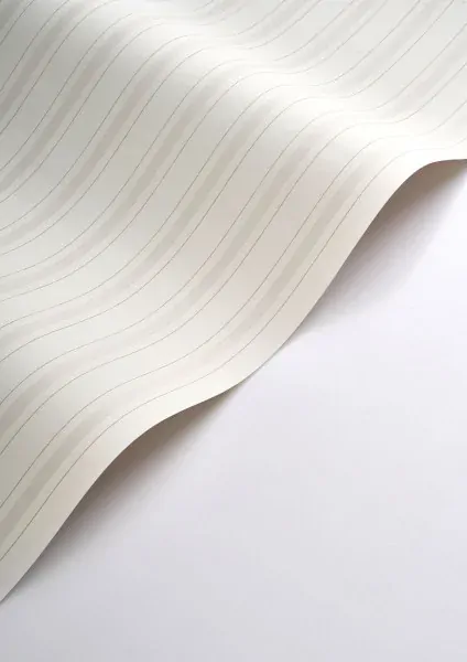 Complementary stripes Three stripes, two thin and one wide, in a soft camel colour: this geometric wallpaper is the perfect accompaniment to Jouy fabrics. The Beige colourway features a soft white base with soft beige stripes.