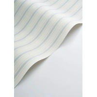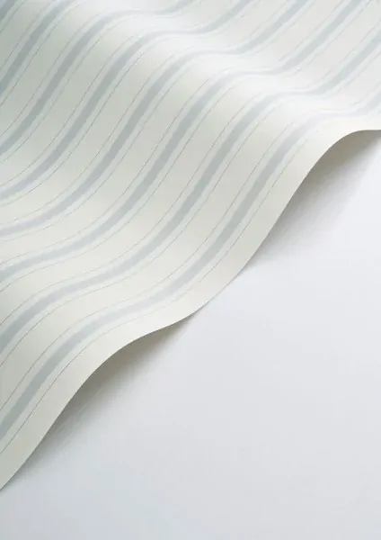 Complementary stripes Three stripes, two thin and one wide, in a soft camel colour: this geometric wallpaper is the perfect accompaniment to Jouy fabrics. The Light Blue colourway features a soft white base with pale blue stripes.
