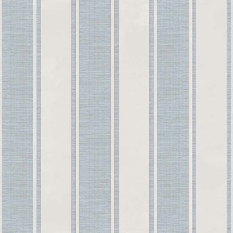 Decorate your walls with a delicately textured stripe, with soft metallic details and a thread-like texture. Like a traditional wide ticking stripe, this design has an all over texture and sheen that shifts in in the light. Constructed on a vinyl material, the Riga design has a rich textural feel. The perfect feature wall in a traditional home or use as a classic twist in a modern space. The Powder Blue colourway features a soft white base with light blue shaded stripes.