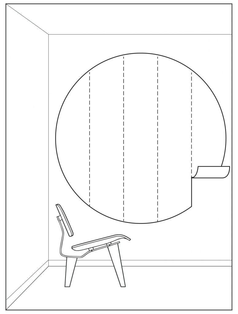 Our wallpaper circles are stylish images printed on premium quality non-woven wallpaper. It consists of five separate sheets (already cut in the shape of a circle) that together form one large circle with a diameter of no less than 237.5 cm.
