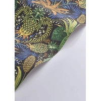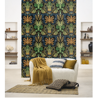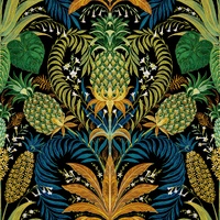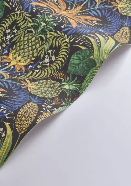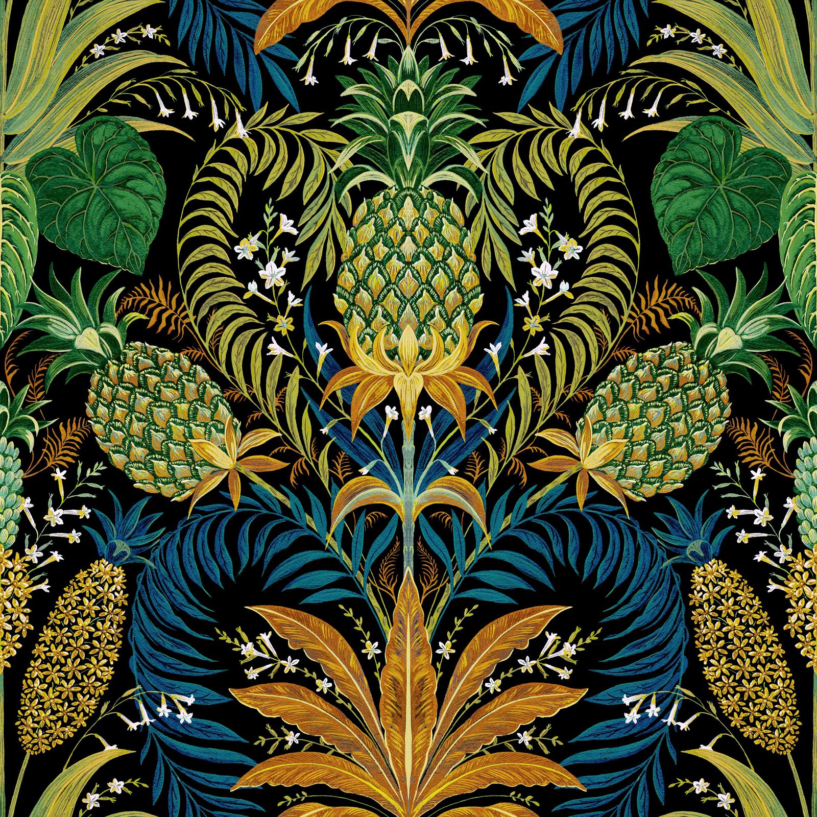 Tutti-frutti composition. How do you reconcile the Morris spirit with the tropics? Simply fall in love with Samba pineapples! This dance collection combines fruit and flowers in a not-so-classic composition. The colours are also bold: we love the brightness of fuchsia and awning green, and the elegance of charcoal black.