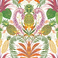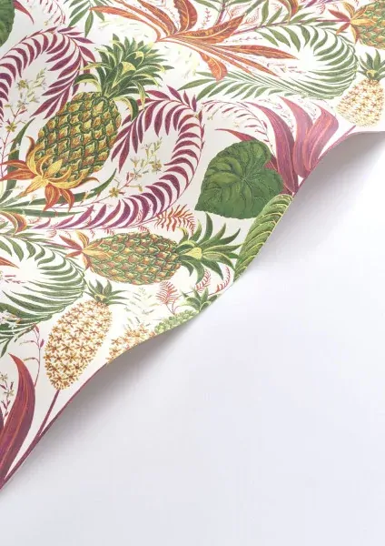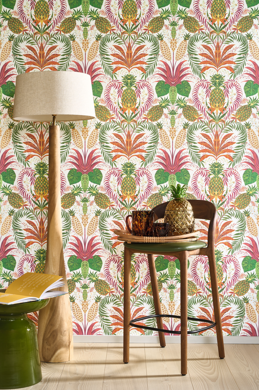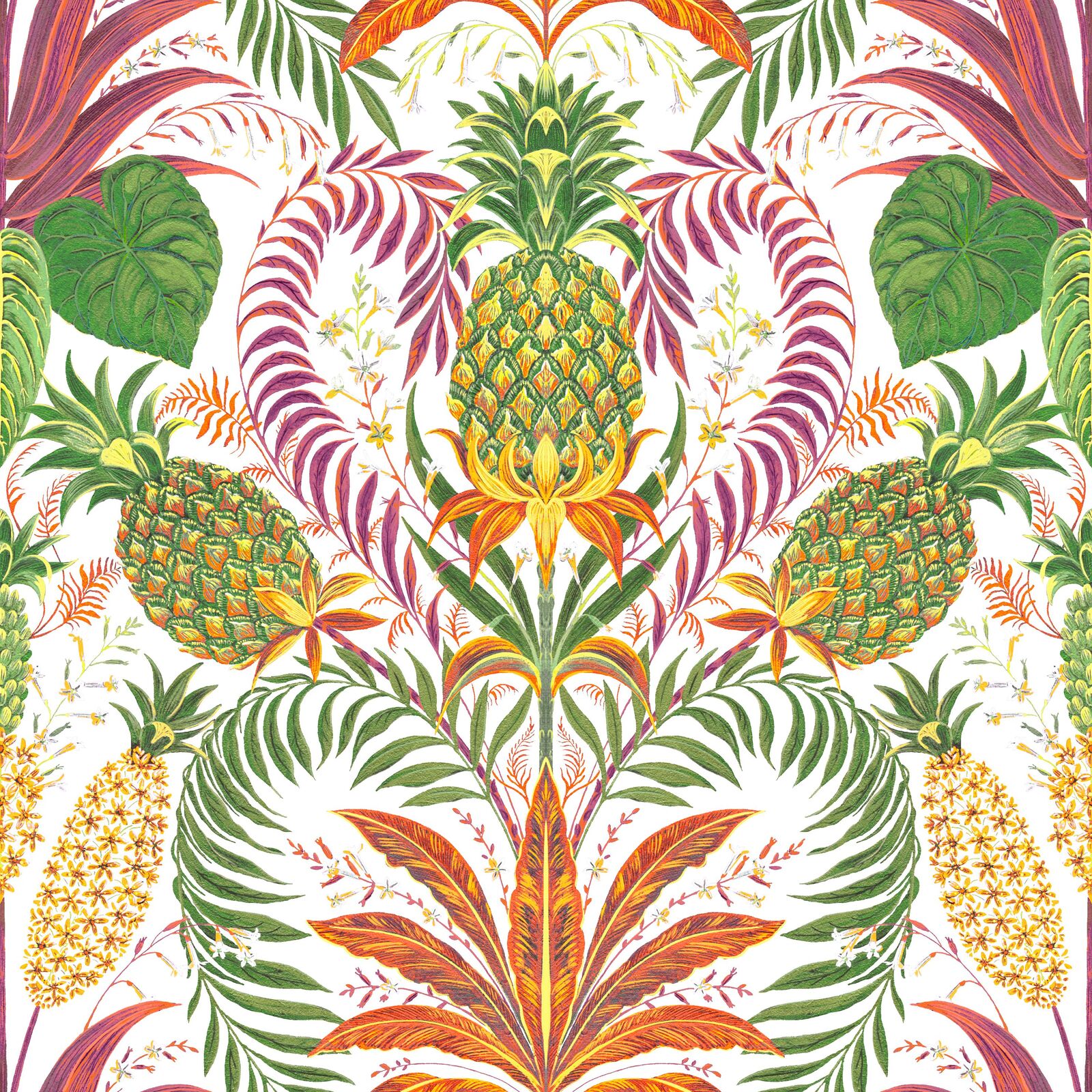 Tutti-frutti composition. How do you reconcile the Morris spirit with the tropics? Simply fall in love with Samba pineapples! This dance collection combines fruit and flowers in a not-so-classic composition. The colours are also bold: we love the brightness of fuchsia and awning green, and the elegance of charcoal black.