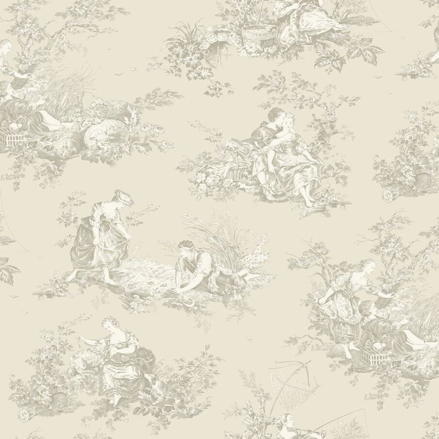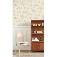 A pastoral scene revisited Fancy a toile de Jouy with a twist? Then Scène d'été is here to break the mould! Colourful backgrounds, modernised designs, contrasting patterns... The Beige Linen colourway features a creamy neutral base with soft beige toile scenes.