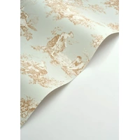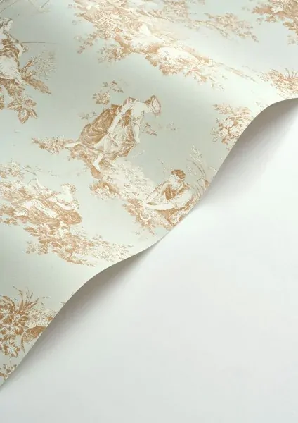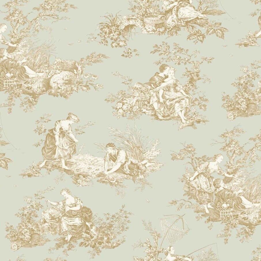 A pastoral scene revisited Fancy a toile de Jouy with a twist? Then Scène d'été is here to break the mould! Colourful backgrounds, modernised designs, contrasting patterns... The Almond Green colourway features a muted seafoam green base with beige toile scenes.
