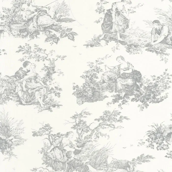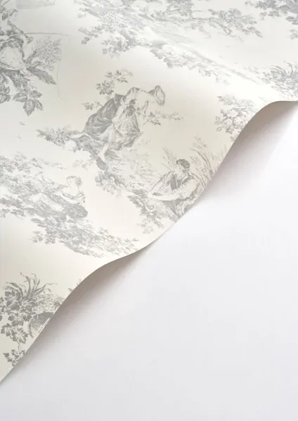 A pastoral scene revisited Fancy a toile de Jouy with a twist? Then Scène d'été is here to break the mould! Colourful backgrounds, modernised designs, contrasting patterns... The Pearl Grey colourway features a creamy white base with soft grey toile scenes.
