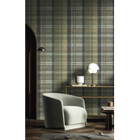 The Scozzese design features a classic plaid pattern with rich etch details in a cross hatching pattern. Bold tonal colours make for a striking wall feature. The Green colourway features a plaid design in shades of green, seafoam, blue, and gold