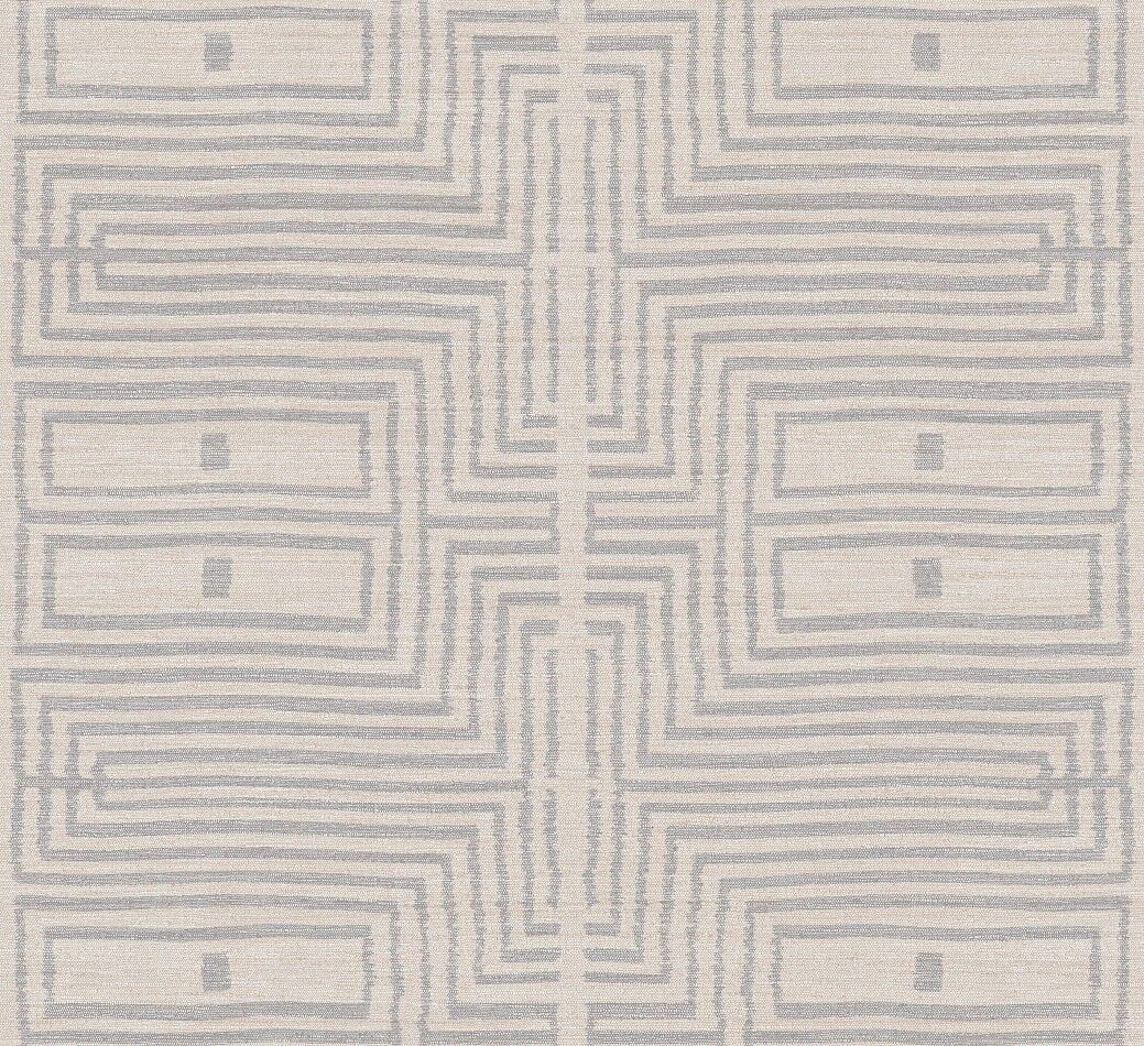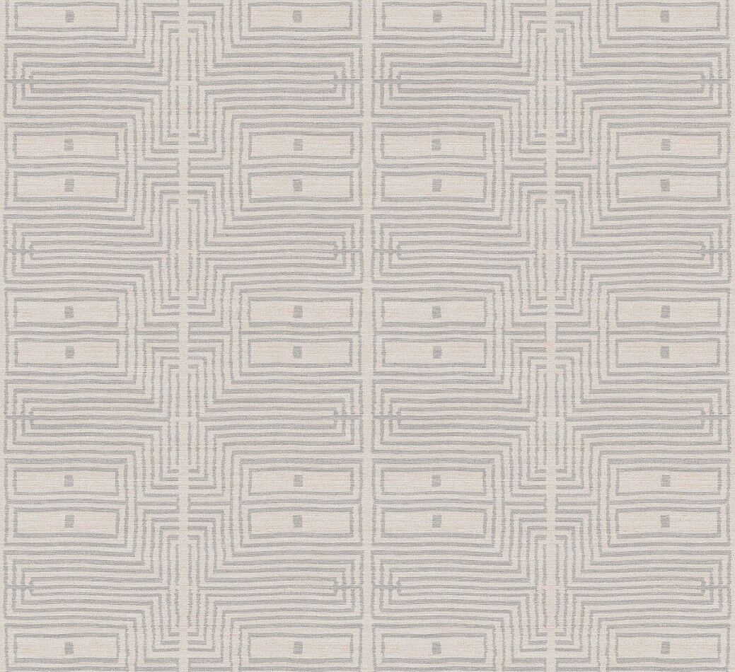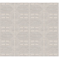 Like the delicate features of a traditional African mudcloth pattern, the Serica design features simple rectangular geometric forms with rich texture reminiscent of a fabric weave. In simple neutral tones, this design evokes a calming feeling within. The Ivory colourway features tones of creamy-white and cool grey with metallic silver threads throughout.