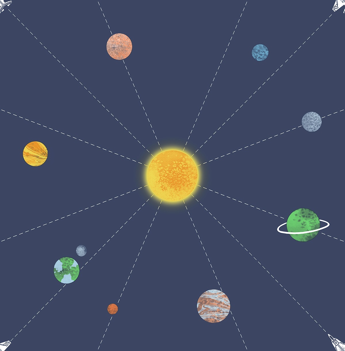 The Solar System wallpaper displays a simple space design with plants and rocket ships. This adventurous design is gravure printed to accurately portray the details of the design.