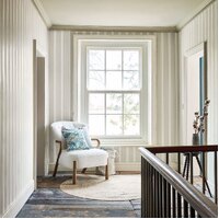 A decorative braid adds detail to this smart stripe wallpaper that’s surface printed to give a textural hand crafted look. The Linen and Silver Grey colourways have an elegant metallic stripe highlight.