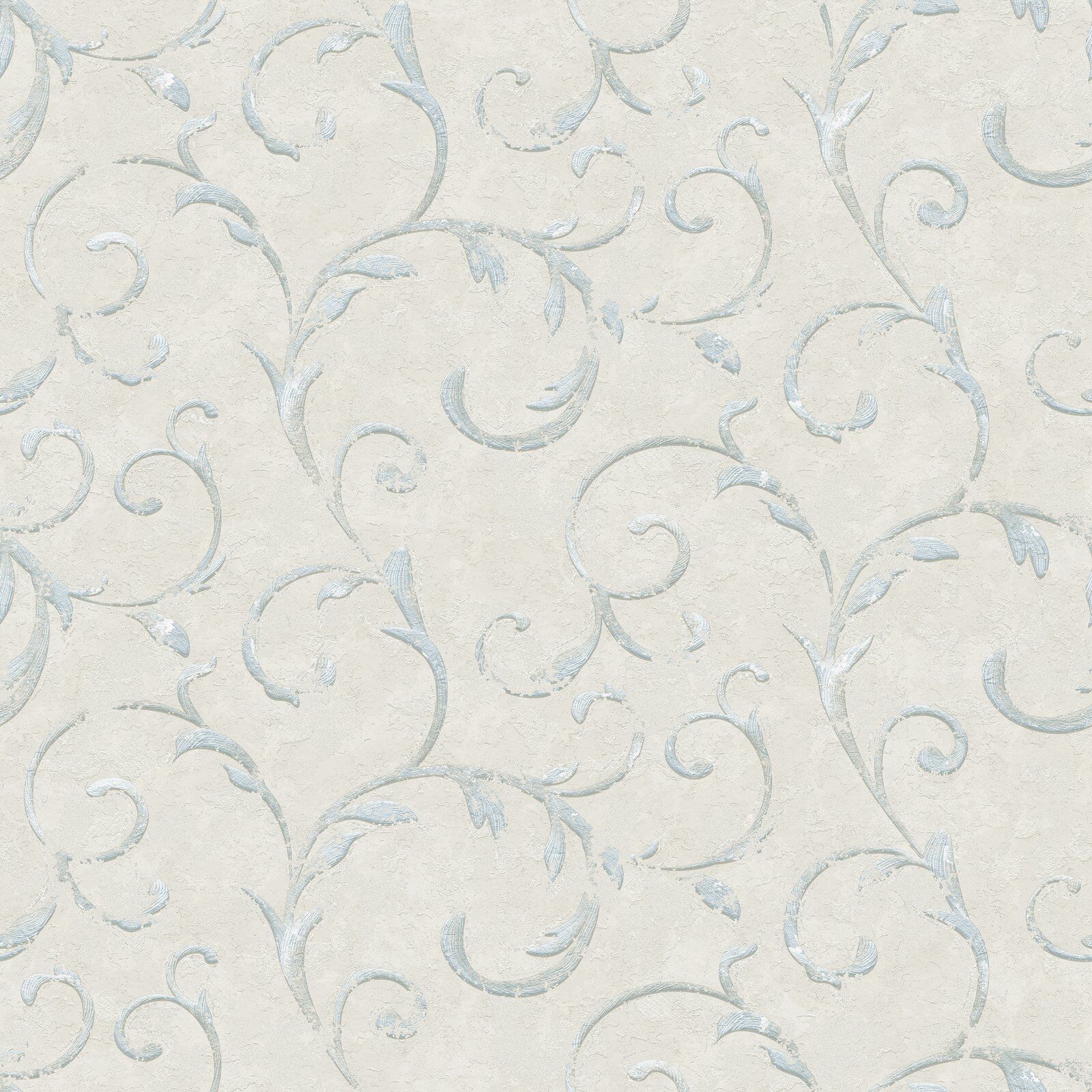 The Spira design features rustic ornamental swirls reminiscent of traditional damask decorations. Each swirl curls like the roots of a plant, giving a truly rustic and natural look to the design. The Cream & Grey colourway features a textured creamy neutral base with swirls in a glossy blue grey and silver shade.