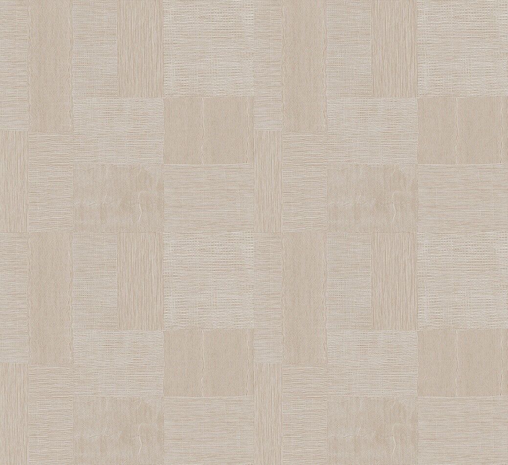 Traces does not follow straight lines, but unfolds in an irregular network of fine marks that together form an abstract landscape. The linework may seem spontaneous, yet it is carefully composed. The texture invites touch, and the pattern shifts with the light. The Taupe colourway features a warm beige base with pearly silver patchwork lines overtop.