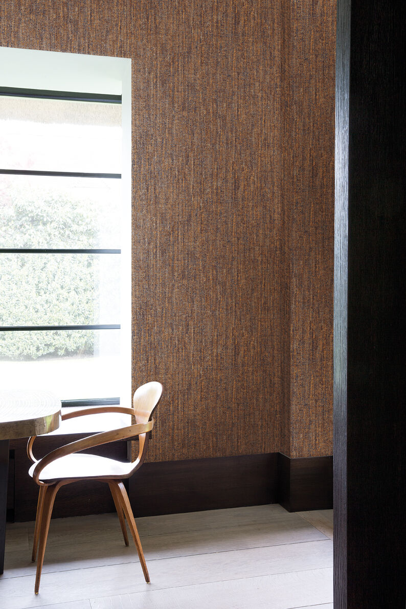 Like a plain fabric texture, Uba combines colour and texture for the ultimate understated wall feature. Washed vertical textures sit under an array of small dots, emulating a traditional fabric texture. The Sierra colourway features a deep purple base with mustard and metallic silver textures with matte terracotta dots over top.