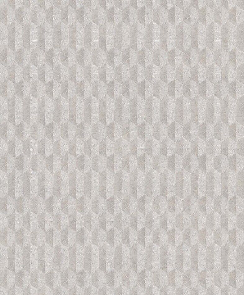 The Vector design features a tile look with bold geometric forms in alternating sizes. Formed by triangles with little stripe details, half-hexagonal shapes contrast in size and colour, making for a truly eye-catching design. The Snow colourway features tones of  soft grey and pearly silver.