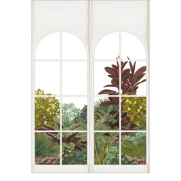 Go green! Dreaming of a glass roof in your kitchen? Opt for this panoramic wallpaper with its pretty trompe l'oeil effect: a garden from days gone by behind a window. Easy to hang, matchable and available in several formats.