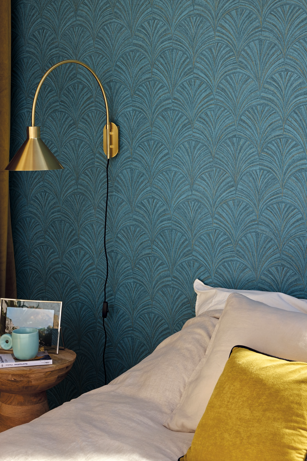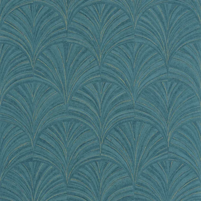 A pretty palmette + a beautiful range of colours = a marquetry-inspired pattern that is very much in vogue this season. We love the new pomegranate colour and the golden effect on some of the designs. The Blue & Gold colourway features a rich blue textured base with blue and metallic gold contrasting threads throughout.