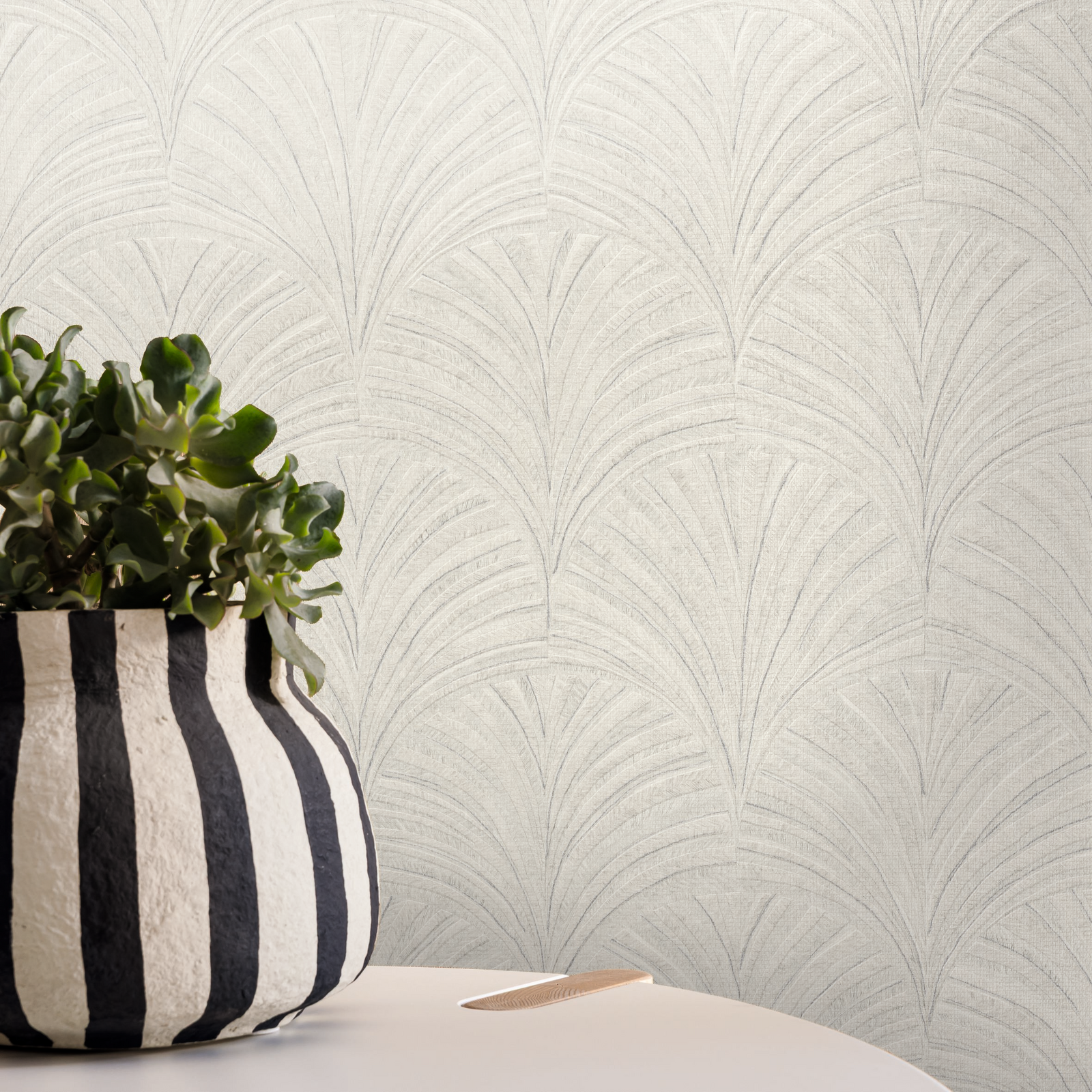 A pretty palmette + a beautiful range of colours = a marquetry-inspired pattern that is very much in vogue this season. We love the new pomegranate colour and the golden effect on some of the designs. The White colourway features a creamy grey textured base with grey and metallic silver threads throughout.