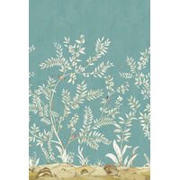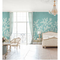 The Vining Beauty wall mural is a non-woven constructed wallcovering with a soft paper texture. The Teal colourway features a soft teal blue background with foliage in a creamy white colour.