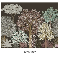 An elegant paperweave collection draws on traditional Japanese techniques. These gorgeous murals are presented in a range of natural hues, staying true to the natural aesthetic of the Arts and Crafts movement. The Multi on Brown colourway features a mix of green, pink, yellow, and neutral toned trees over a dark brown background.