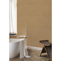 Zostera borrows from the appearance of hand-woven and glued seagrass fibres. A print, taken from actual seagrass, is applied to a pre-printed vinyl. This gives a deep-grain and recreates the intensity of the colours. Beautifully supple, it can be hung without a match to give an irregular and natural look and is available in a range of 8 natural shades. The Golden Brown colourway is a rich brown shade design.